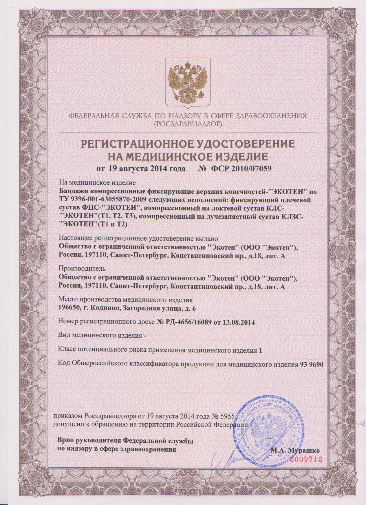 Бандаж для плеча и предплечья ФПС-01С Экотен, повязка Дезо