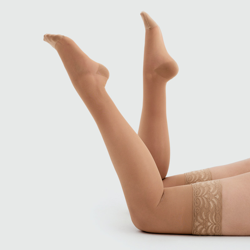 - Тонкие и прозрачные компрессионные чулки удобно носить даже в весеннее-летний период, нежная текстура полотна создаёт комфорт коже женских ног.
