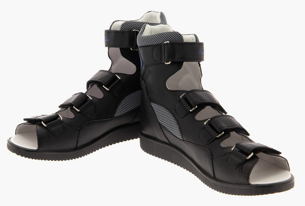 Сандалии изготавливают из нат.кожи. Обеспечивают их жесткой задней частью и берцами, которые отлично поддерживают стопы при их отклонениях. Высокий берец необходим для иммобилизации движения голеностопа. Это дает возможность суставам развиваться правильно или предотвращает развитие деформаций, эффект достигается при регулярном ношении.